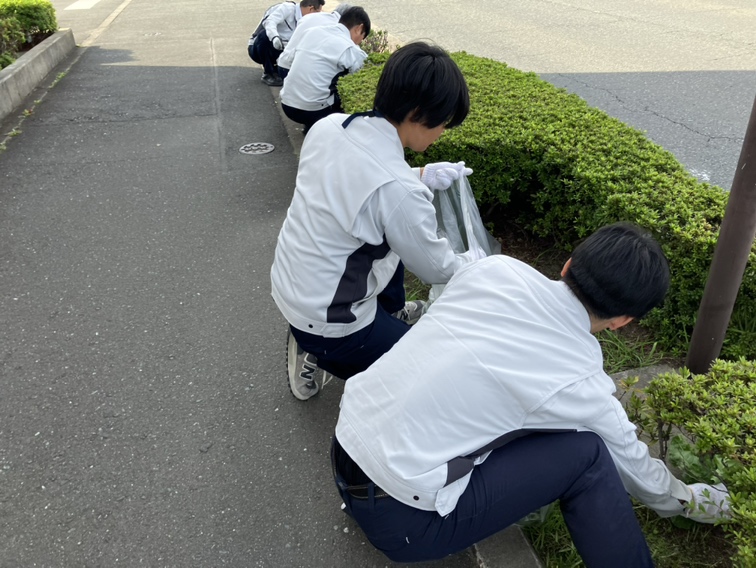 若手社員を中心に本社周辺の道路・歩道沿いの雑草除去やゴミ拾いを行い、地域の環境美化に貢献しました。