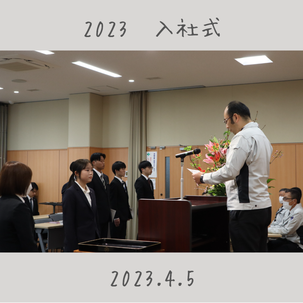 2023年4月5日、2023年入社式を執り行いました。みなさん緊張しながらも自己紹介を頑張りました。