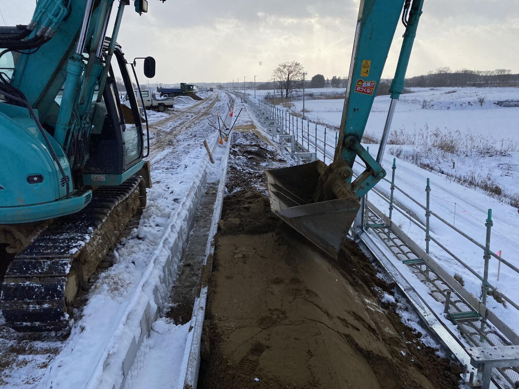 七戸道路改良 坪川地区舗装工事 工事名 令和3年度 七戸道路改良 坪川地区舗装工事 竣工年月 令和4年 3月 施工場所 青森県上北郡七戸町字布附田川目~字寺沢前地内 令和3年度 七戸道路改良 坪川地区舗装工事 大林道路㈱の下請け工事 道路土工(路肩盛土・法面整形)、AS舗装工(下層路盤1層目)、排水構造物工(側溝工・集水工)、情報ボックス工(埋設管路)、付帯設備工(ハンドホール) タグ:東北営業所東北地方